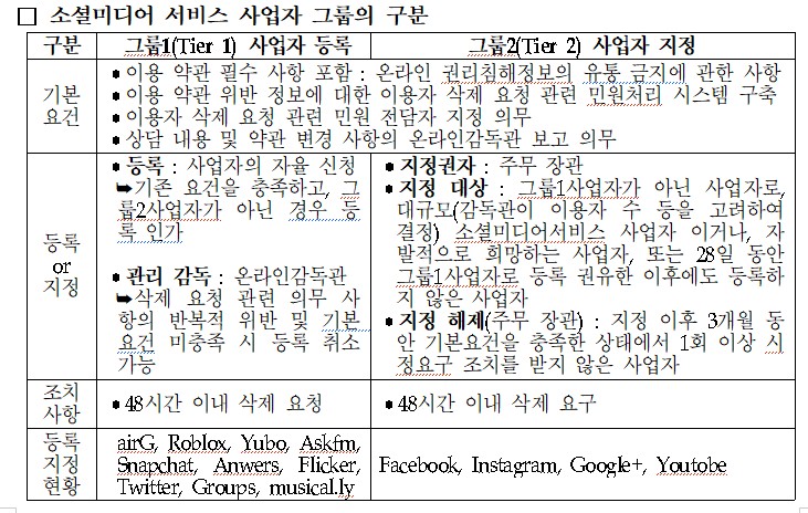 소셜미디어 내용 규제 체계